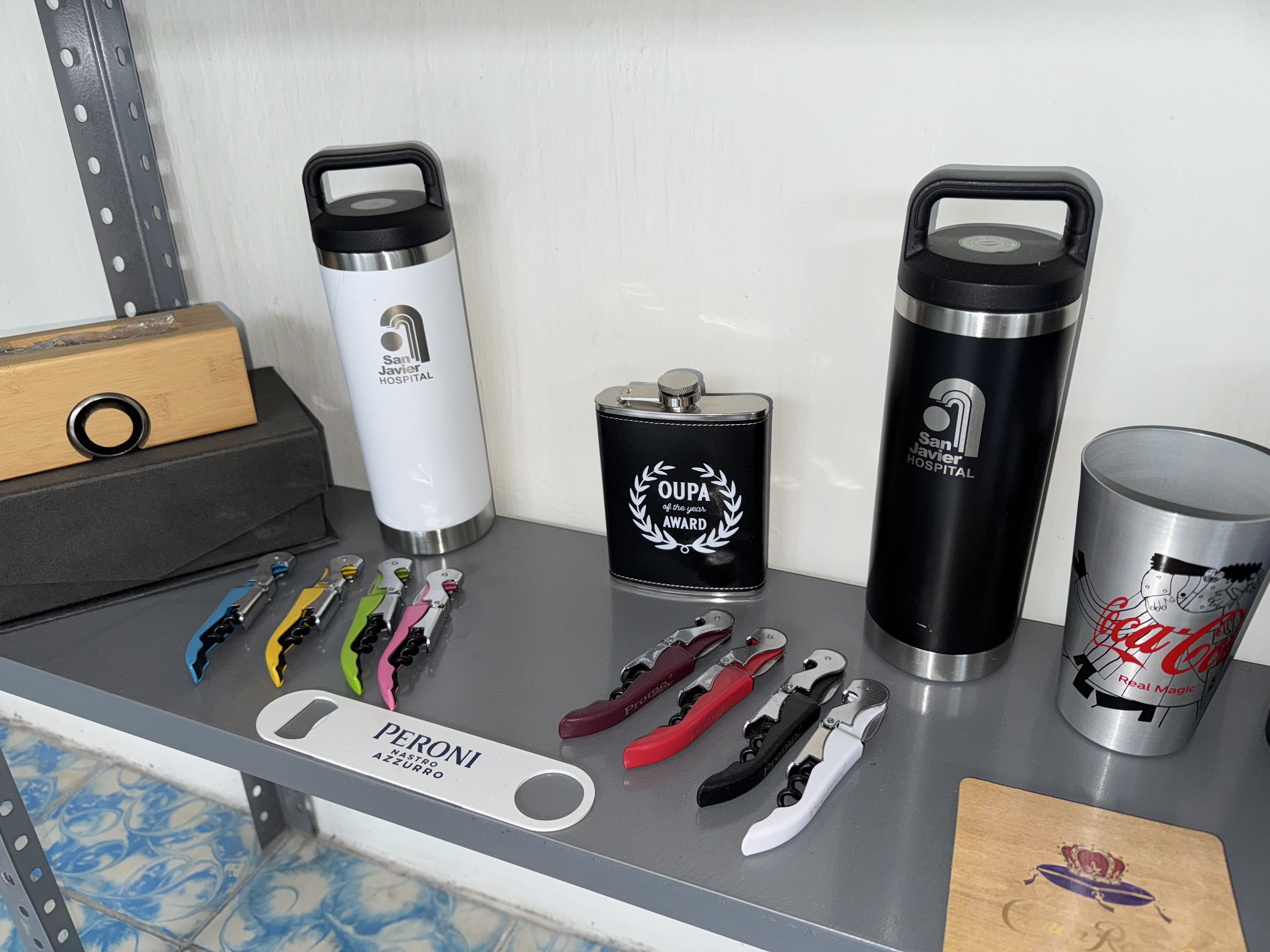 Agendas ● Libretas ● Tazas ● Termos ● Bolígrafos ● Llaveros ● Gorras ● Mochilas ● Botellas
