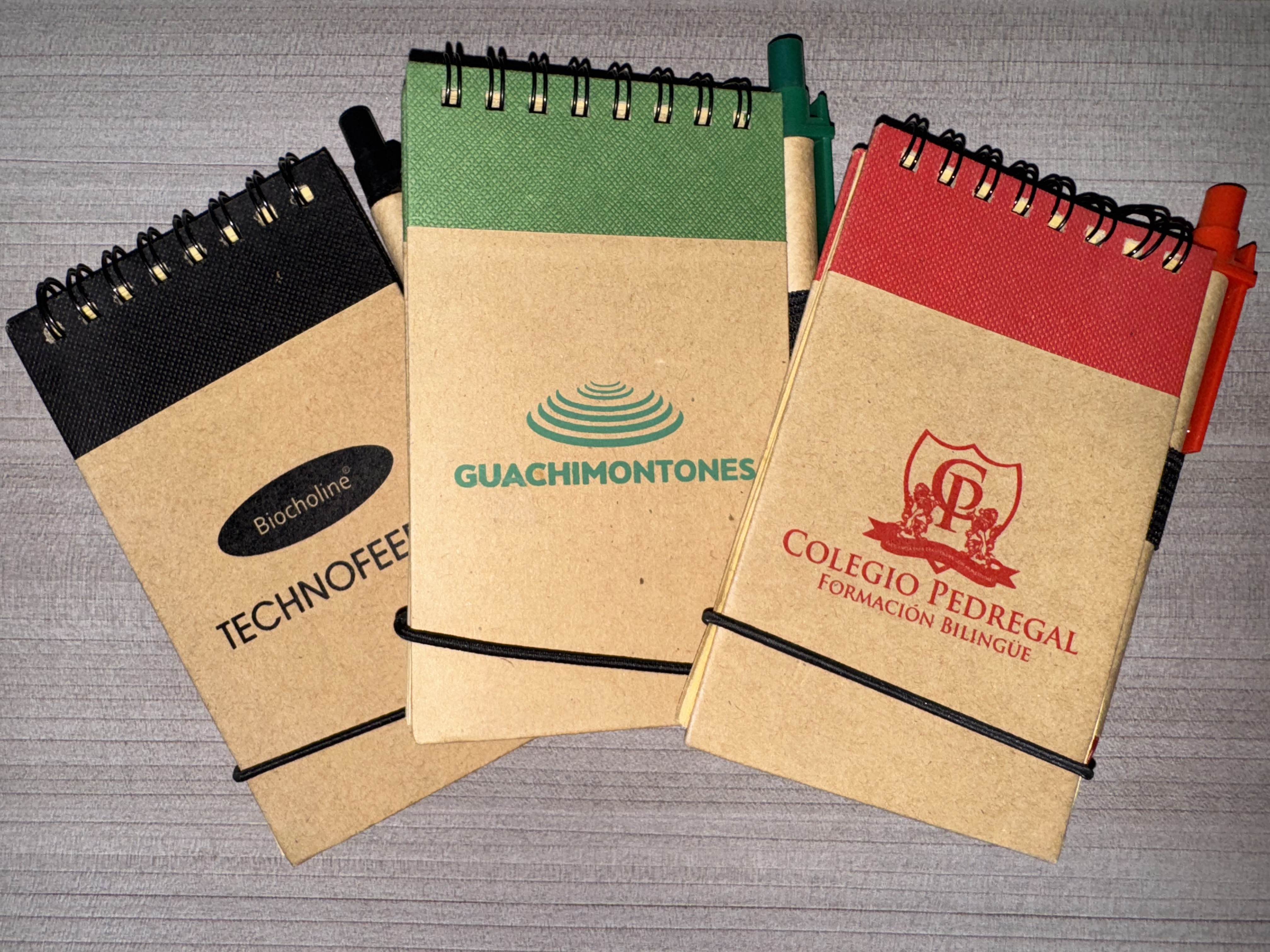 Contamos con una amplia variedad de modelos de Libretas en distintos tamaños y materiales para personalizar con los colores de tu marca y tu imagen.